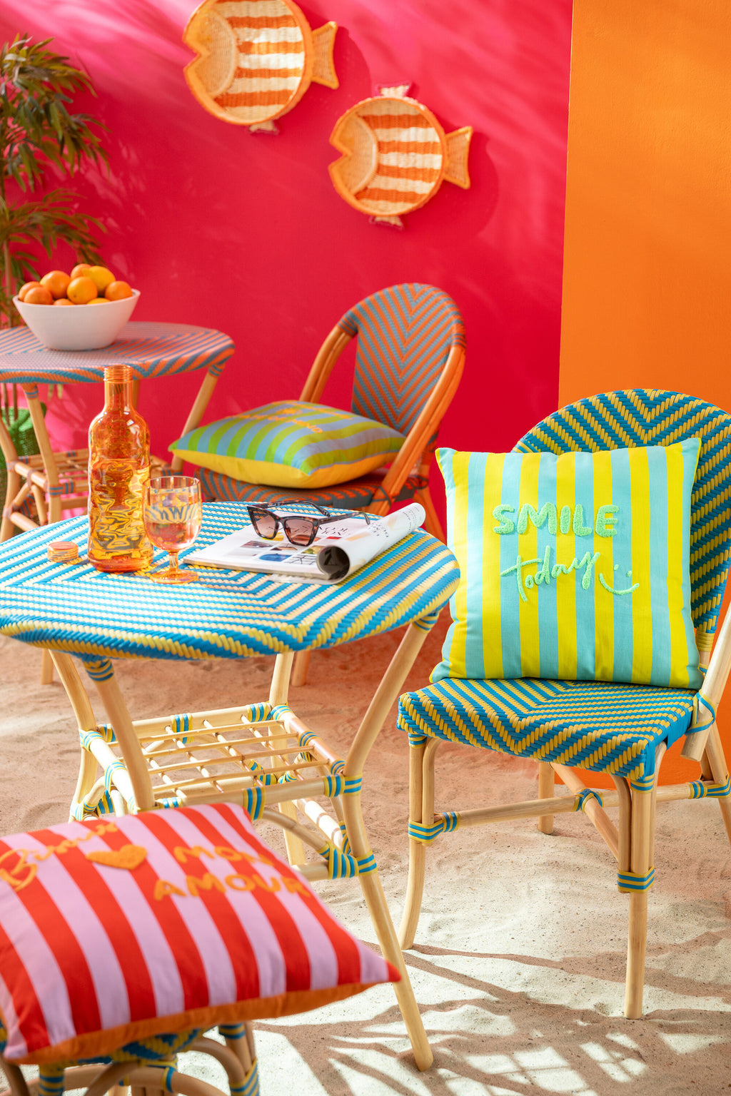Dining Chair Geo Rattan Yellow/Azure Blue