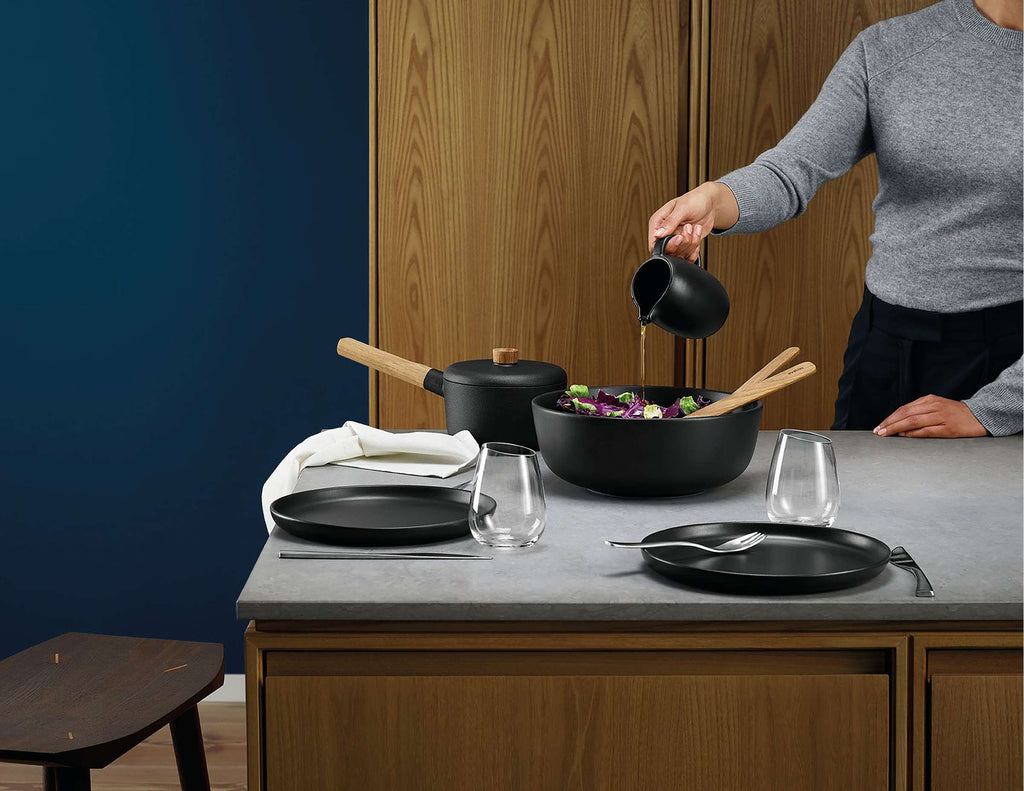 Een minimalistische designtaal en een functionele mindset. Dit is de essentie van Scandinavisch design en wat de steengoedserie Nordic Kitchen heeft ge��nspireerd. Een eenvoudig en stijlvol ontwerp in zwart aardewerk dat een rustieke uitstraling toevoegt, passend bij de Scandinavische, relaxte levensstijl.