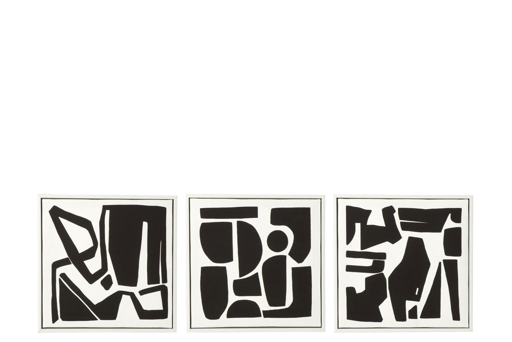 Wall Decoration Geometric Mdf Black/White Assortment Of 3