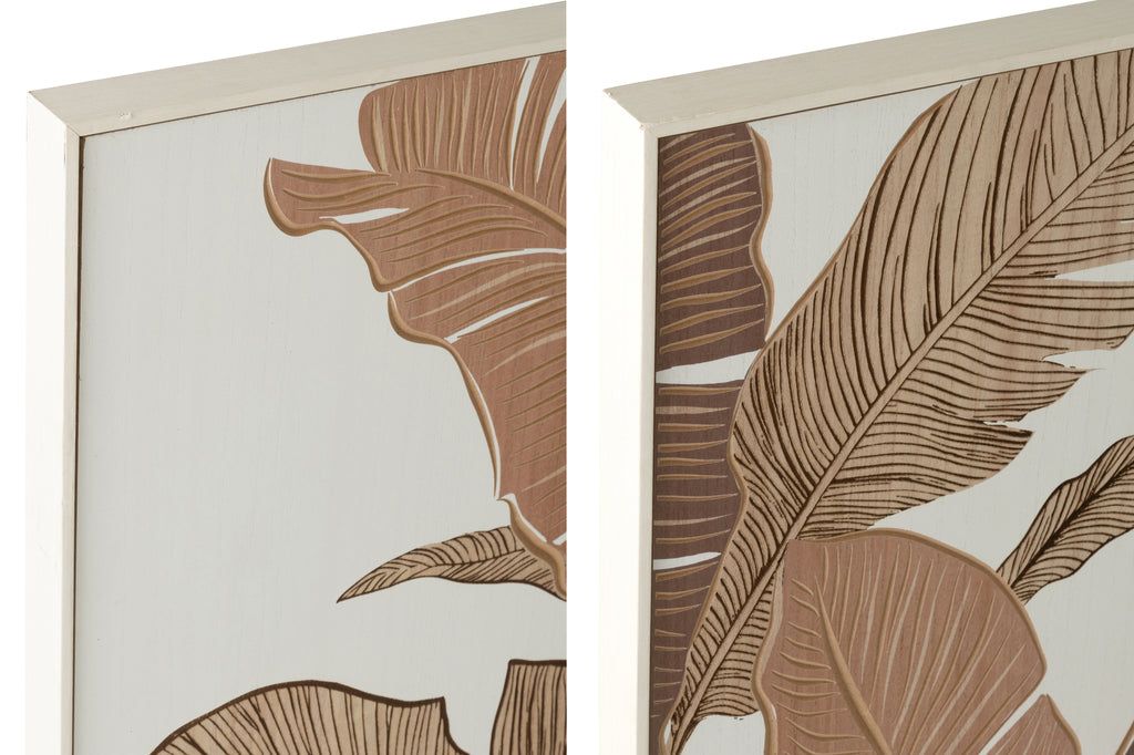 Wall Decoration Wood Carved Pinewood Brown/Off-White Assortment Of 2