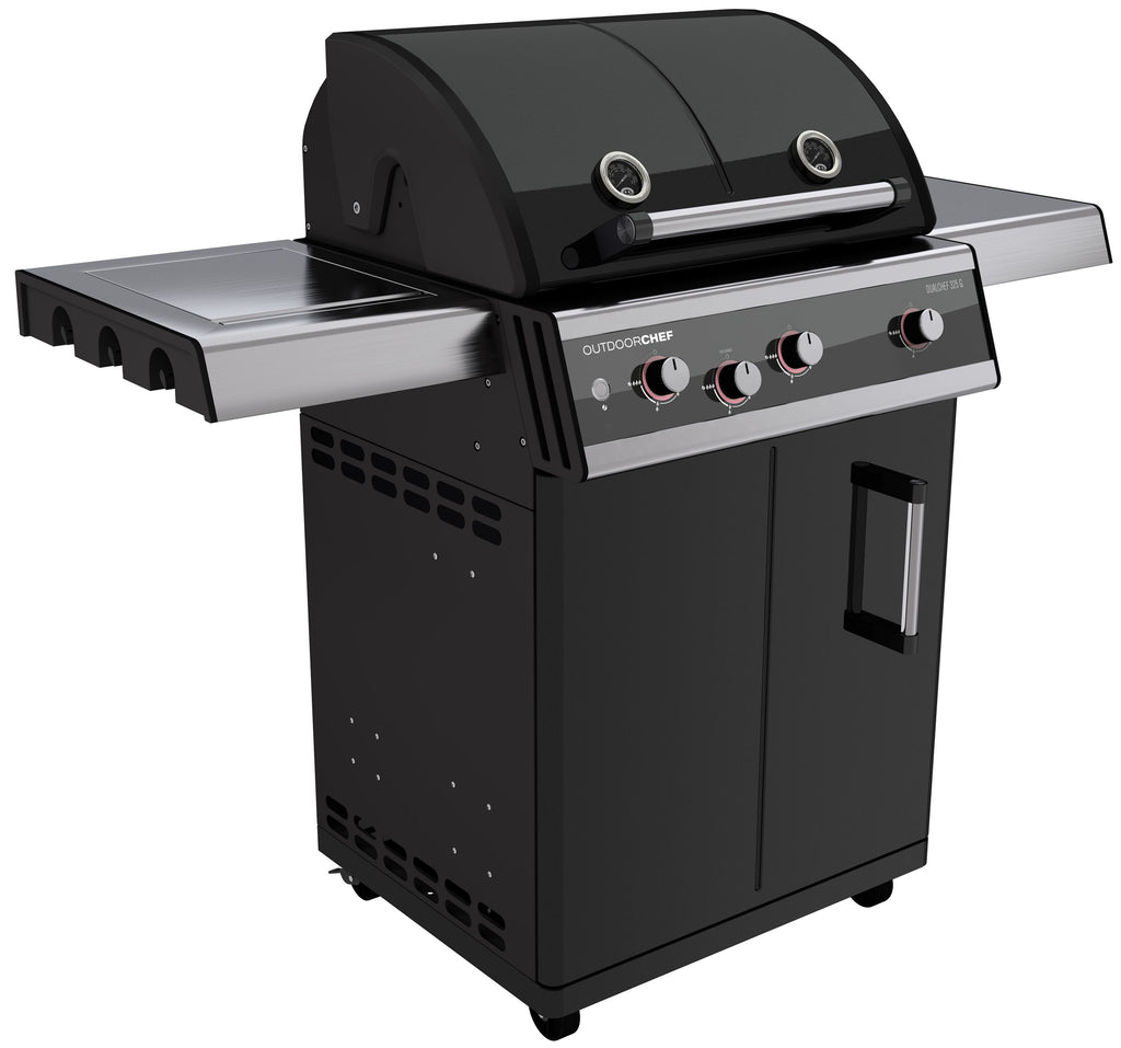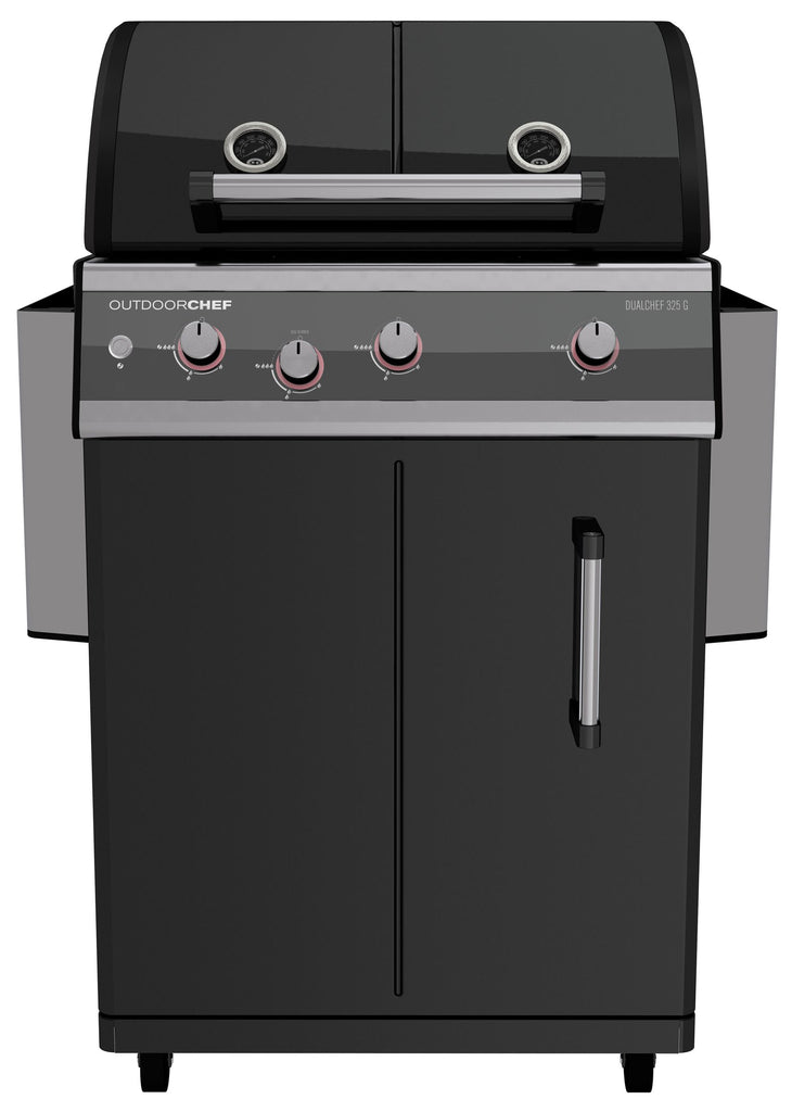 De Dualchef 325 G Barbecue van het kwaliteitsmerk Ourdoorchef is een gas barbecue die gebruik maakt van een Dual Gourmet Systeem (DGS®) en voorzien is van 3 roestvrijstalen DGS ® Twin Burners met elektrische one-touch-ontsteking en een handige zijbrander. Hierdoor kan de barbecue twee temperatuurzones genereren gescheiden door een zoneverdeler waardoor u bijvoorbeeld op de ene kant op hoge temperatuur kunt barbecueën en aan de andere kant op lage temperatuur. De barbecue maakt verder gebruik van hoogwaardige gietijzeren barbecue roosters die de warmte optimaal vasthouden en verdelen waarbij het Safety Light Systeem (SLS) ervoor zorgt dat de bedieningsknoppen zichtbaar worden als de klep wordt geopend en de ledverlichting automatisch wordt aangepast aan de omgevingshelderheid. Tot slot heeft de barbecue twee robuuste en opklapbare zijbladen voor het bereiden van gerechten, wielen voor het gemakkelijk vervoeren, een thermometer en opbergruimte onder de barbecue.