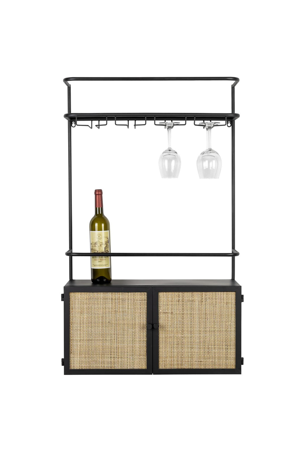 Dit wijnrek voor aan de muur is geïnspireerd op de Japandi trend (Japans en Scandinavisch design gecombineerd). Het wijnrek is door de vierkante rattan vlakken op de deurtjes een prachtig ontwerp die je aan je muur van je keuken kunt ophangen. Wijnrek Guuji past perfect in een interieur die strak ingericht is, maar past ook goed bij een interieur dat speels is. Het kastje heeft een handige magnetische sluiting, twee planken en aan de bovenkant kun je je favoriete wijnglazen ophangen.