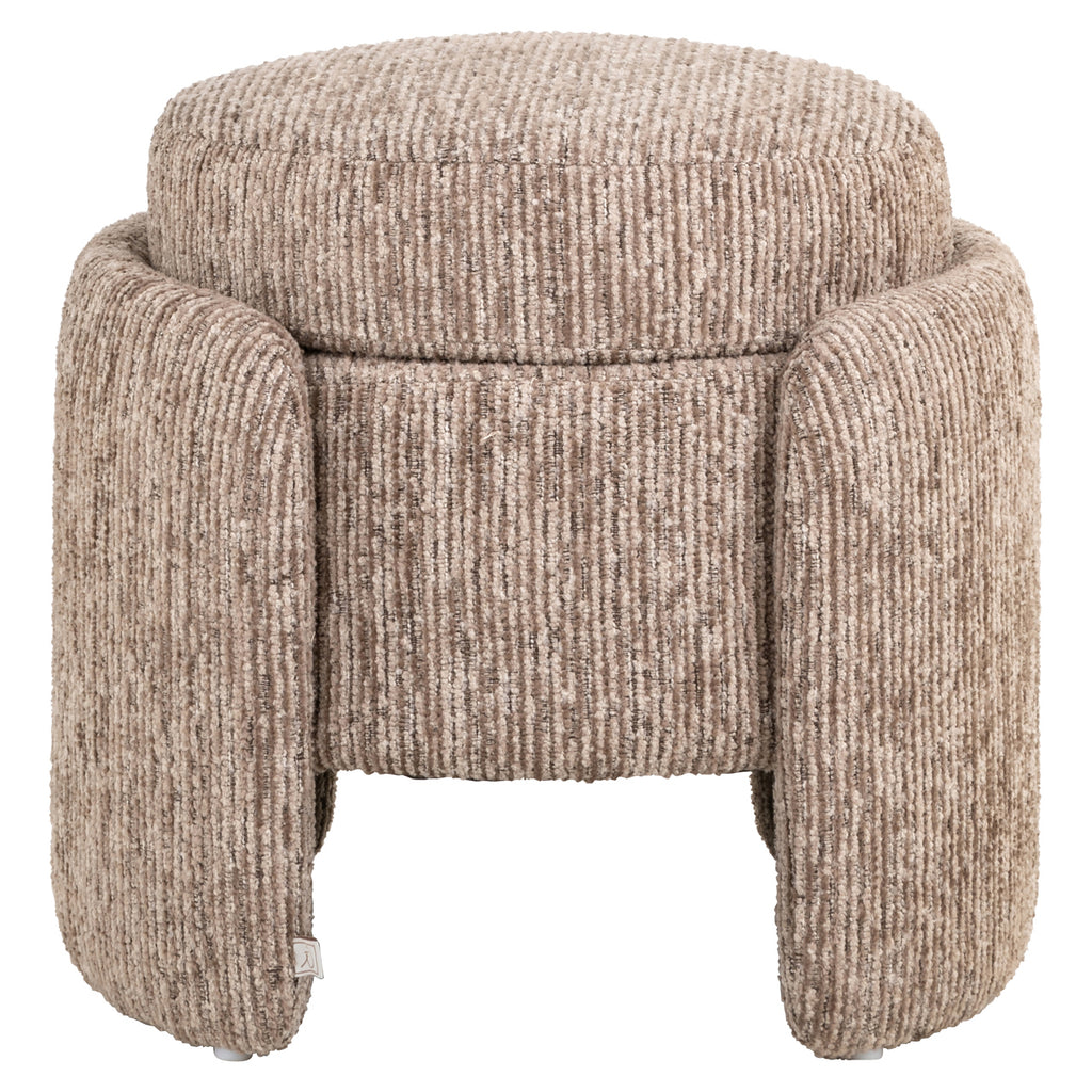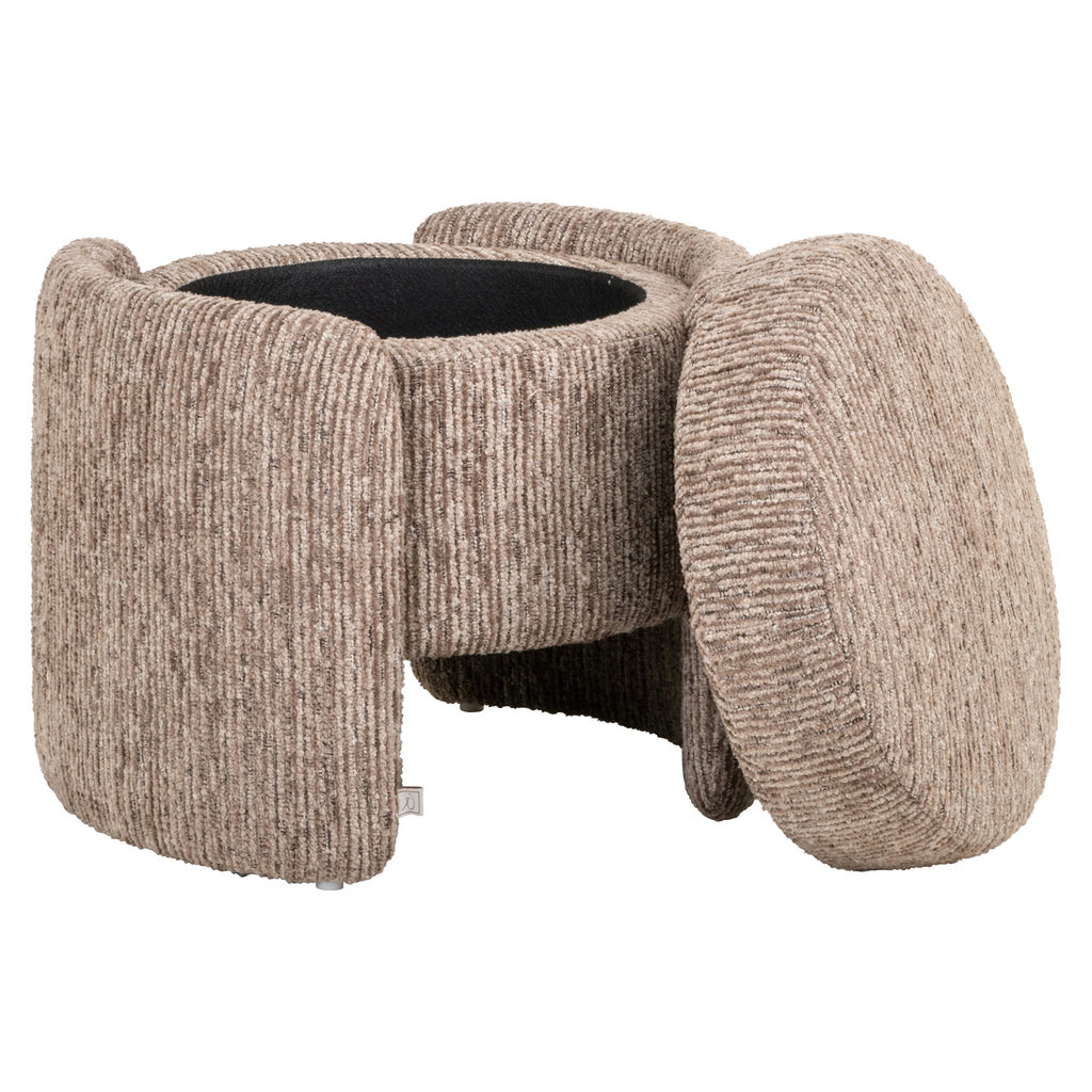 Een veelzijdige poef die comfort en functionaliteit combineert. De binnenruimte biedt handige opbergruimte voor kleine accessoires. Tegelijk vormt het een stijlvol element in de zithoek. Het ontwerp laat zich moeiteloos combineren met verschillende interieurstijlen en zorgt voor een rustige balans in de ruimte.