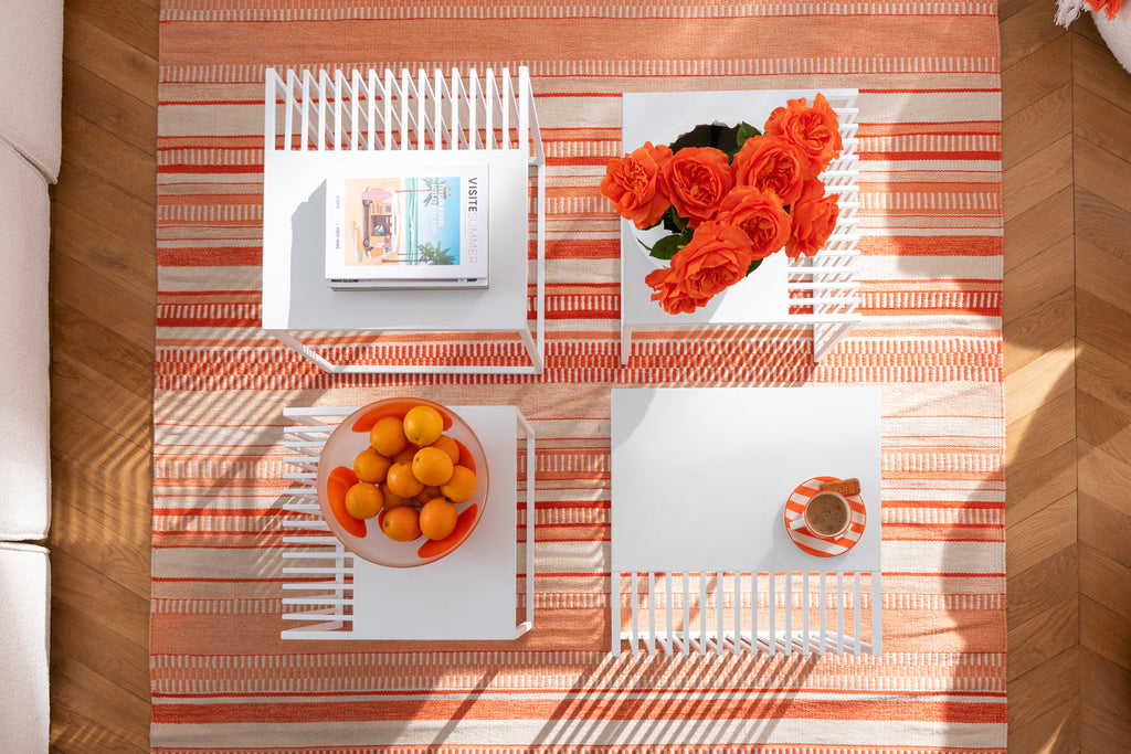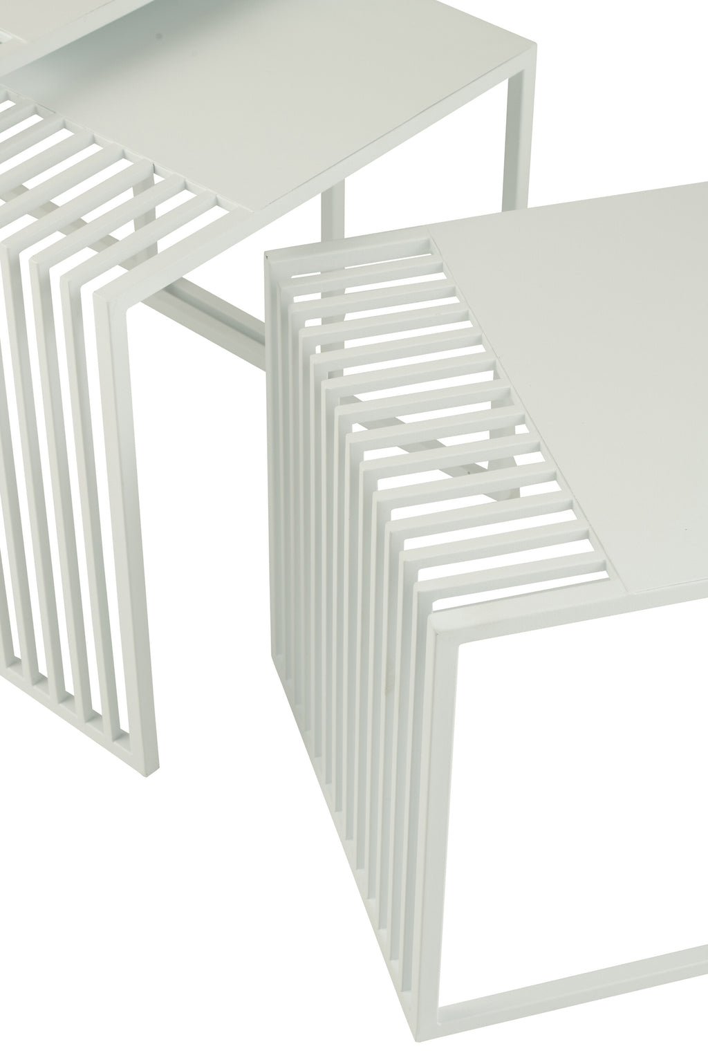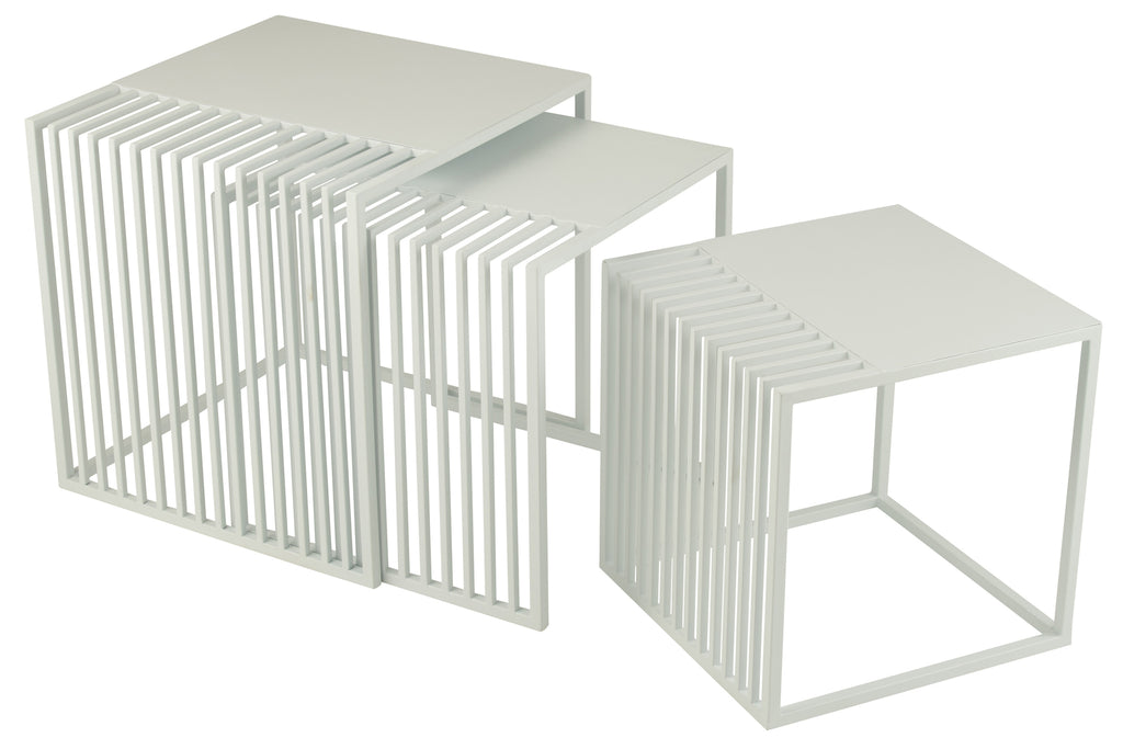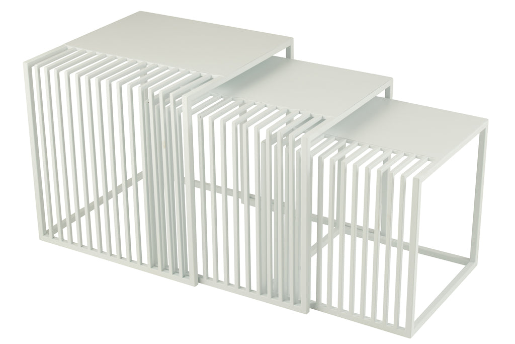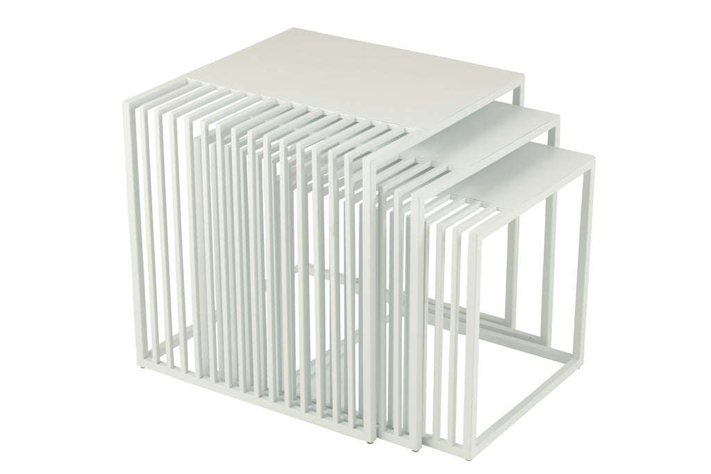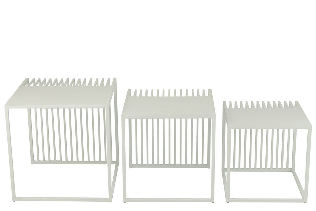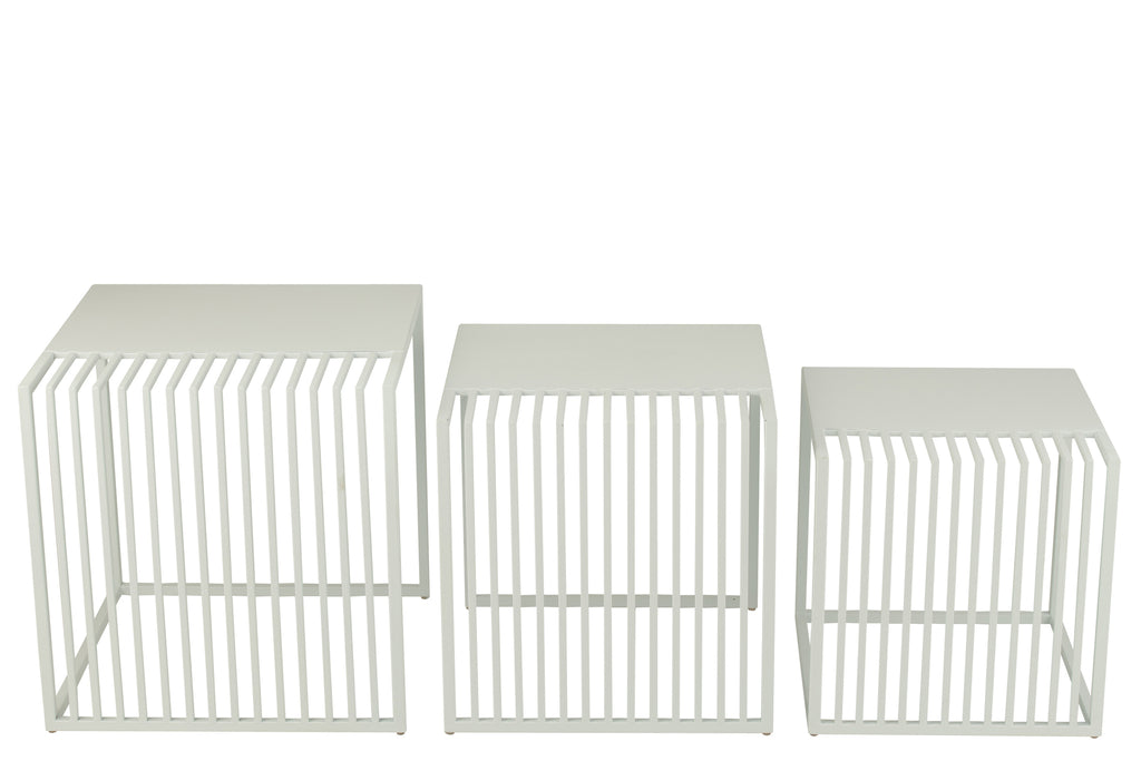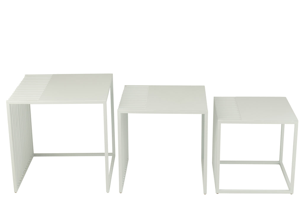 Set Of 3 Side Table Outdoor Square Metal White
